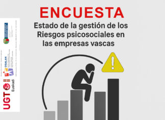 Esta encuesta, realizada por UGT Euskadi se encuentra dentro de las acciones planificadas y realizadas dentro del proyecto en materia de prevención de riesgos laborales, financiado por Osalan, llamado “HERRAMIENTAS DE PROTECCIÓN PSICOSOCIAL”.