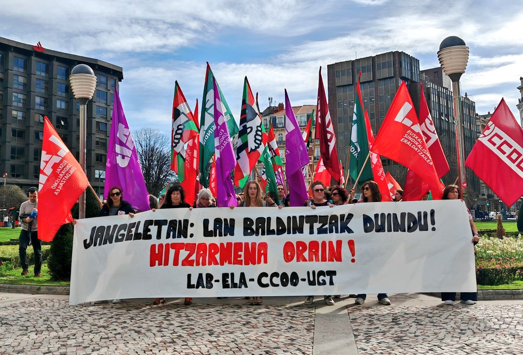Bajo el lema “Jangeletan: Lan baldintzak duindu! Hitzarmena orain.”, LAB, ELA, CCOO y UGT han organizado las siguientes movilizaciones:
