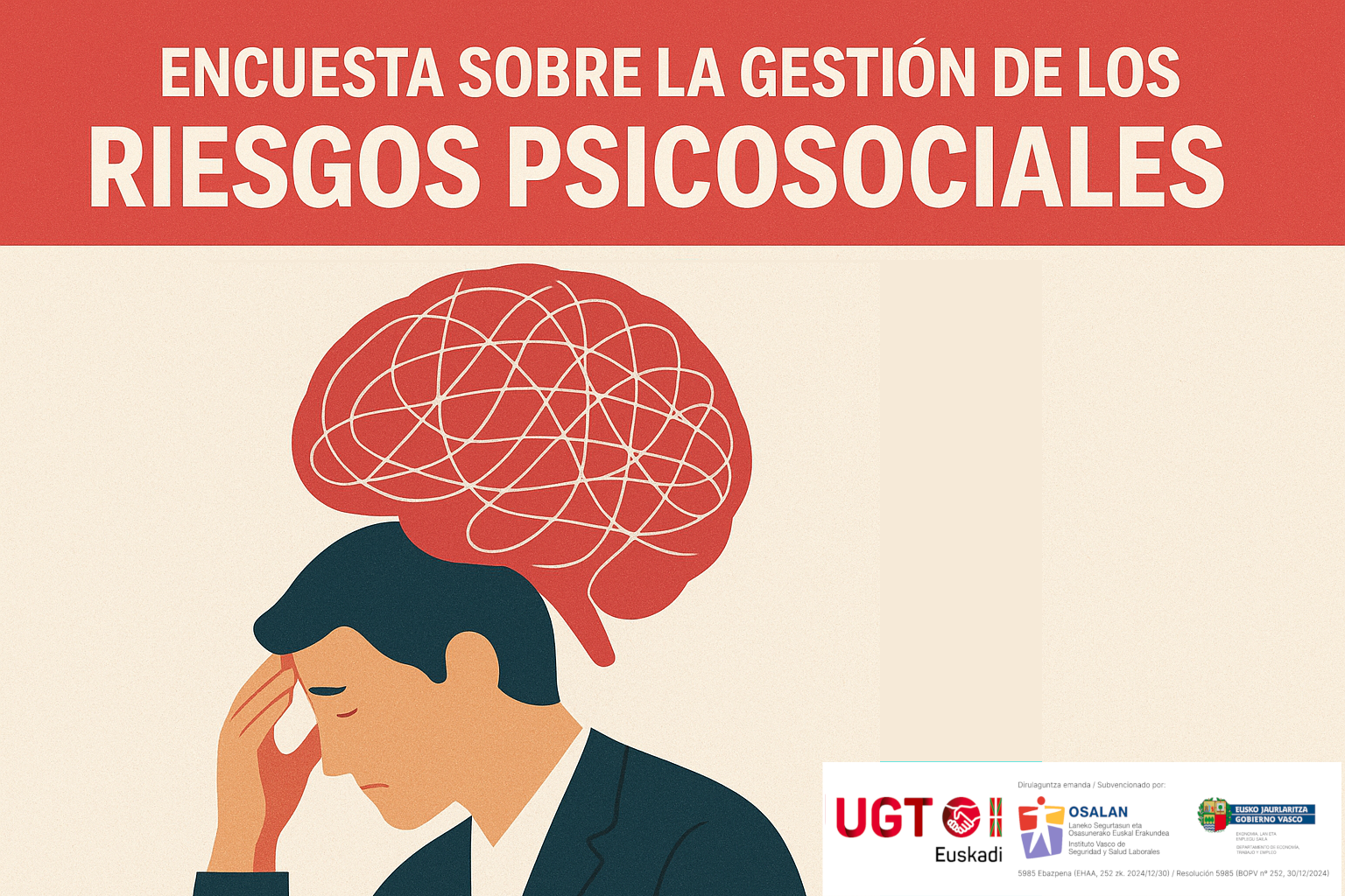 Los resultados evidencian la urgencia de reforzar la prevención de los riesgos psicosociales en las empresas vascas. UGT-Euskadi destaca la necesidad de: