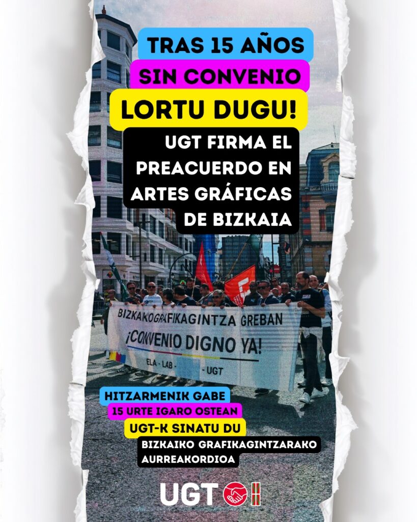 Tras un largo proceso de negociación y casi una década y media de bloqueo en la negociación colectiva, UGT-FICA Euskadi, junto al resto de fuerzas sindicales del sector, ha alcanzado un preacuerdo para el nuevo Convenio Colectivo de Artes Gráficas de Bizkaia, que tendrá vigencia desde el 1 de enero de 2026 hasta el 31 de diciembre de 2027. Este hito, supone un paso decisivo para devolver la seguridad jurídica y la estabilidad laboral a las cerca de 2.000 personas trabajadoras afectadas.